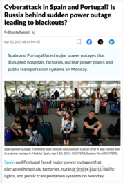 [산업경제뉴스 이상현 기자] 우크라이나 전쟁 이후 값싼 러시아 파이프라인천연가스(PNG)를 더 이상 예전처럼 구입하지 못하게 된 유럽 국가들의 에너지 공급이 불안정해지면서 최근 대규모 정전 사태까지 발생, 그 원인을 두고 격렬한 논쟁에 휩싸였다. 지난달 29일 포르투갈과 스페인 등 이베리아반도 일대에서 발생한 대규모 정전 사태를 두고 ‘러시아 배후설’과 ‘신재생에너지 한계론’이 동시에 제기되면서 에너지 정책마저 정치화되고 있다는 딱한 소식이다. 한국의 에너지 전문가는 “에너지 순수입국인 한국에서는 이미 오래전부터 에너지 문제가 정책의 대상이 아니라 정치의 대상이 돼 산업계와 전문가들이 애를 먹어왔다”고 안타까워했다. 4월 말 남유럽 이베리아 반도 일대에서 발생한 대규모 정전은 스페인 전체 전력 공급의 60%에 해당하는 15기가와트(GW)의 전력이 단 5초 만에 손실되면서 발생했다. 순식간에 포르투갈과 프랑스까지 이어지는 유럽 전력망이 불안정해졌고, 여러 발전소가 연쇄적으로 가동을 멈췄다. ◆ 심각하게 정치화된 에너지 문제 <로이터 통신>은 지난 4월 29일 “28일(현지시간) 스페인과 포르투갈, 프랑스 남서부 일부 지역에 대규모 정전이 발생, 큰