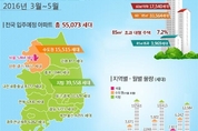 (미디어온) 국토교통부는 오는 3월부터 5월까지(3개월간) 전국 입주예정 아파트는 총 55,073세대(조합 물량 포함)로 집계되었으며, 지역별로는 수도권 15,515세대(서울 5,864세대 포함), 지방 39,558세대가 각각 입주하는 것으로 조사되었다고 밝혔다. 세부 입주물량을 보면, 수도권은 3월 인천송도(1,230세대), 인천청라(646세대) 등 3,671세대, 4월 서울성동(1,156세대), 하남미사(1,996세대) 등 5,602세대, 5월 서울양천(1,081세대), 구리갈매(1,075세대) 등 6,242세대가 입주할 예정이며, 지방은 3월 대구혁신(1,028세대), 양산물금(1,557세대) 등 13,561세대, 4월 광주화정(3,726세대), 충남도청이전(1,660세대) 등 13,413세대, 5월 대구대현3(1,106세대), 양산물금(1,158세대) 등 12,584세대가 입주할 예정으로 조사되었다. 주택 규모별로는 60㎡이하 17,540세대, 60~85㎡ 33,564세대, 85㎡초과 3,969세대로, 85㎡이하 중소형주택이 전체의 92.8%를 차지하여 중소형주택의 입주물량이 많은 것으로 조사되었다. 주체별로는 민간 43,579세대, 공공