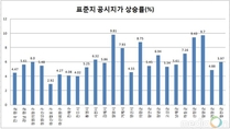 (미디어온) 경상남도는 도내 59,385필지에 대한 2016년도 1월 1일 기준 표준지 공시지가가 오는 23일자로 공시된다고 밝혔다. 경남도 표준지 공시지가는 전년보다 5.61% 상승했으며, 이는 전년도 경남 표준지 공시지가 상승폭 7.05%보다 1.44% 감소하였고, 올해 전국 평균 표준지 공시지가 상승률 4.47%보다는 1.14% 높은 상승률을 나타내고 있다. 이번 발표된 표준지 공시지가는 지난해 9월부터 약 6개월간 한국감정원과 지역별 담당 감정평가사가 직접 조사·산정한 것으로 소유자 및 시·군·구의 의견청취, 중앙부동산평가위원회의 심의를 거쳐 확정했다. 표준지 공시지가는 시·군·구청장이 산정할 개별공시지가와 보상평가 등의 기준이 되며, 개별공시지가는 각종 과세기준과 부담금 부과기준 등으로 활용된다. 도내의 표준지 공시지가 상승률은 밀양시(9.81%), 함양군(9.7%), 산청군(9.43%) 순으로 높았으며, 창원시 마산합포구(2.92%)가 가장 낮았다. 2016년도 표준지 공시지가는 실거래가 상승률을 반영한 것이 가장 큰 상승원인이며, 함양~울산간 고속도로 개통과 창녕 고속도로 나들목 신설계획 등 기반시설 확충, 밀양 나노국가산업단지와 창녕