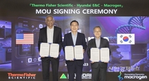 [산업경제뉴스 최기훈 기자] 현대건설이 입주민의 건강수명 연장을 목표로, 초개인화 서비스를 제공하는 미래형 주거모델 ‘올라이프케어 하우스(All Life-care House)’ 개발에 적극 나선다. 이를 위해 생명공학과 유전자 검사 분야의 글로벌 선도기업과 팀을 구성했다. 현대건설은 5월 31일 서울 종로구 계동에 위치한 현대건설 본사에서 생명공학 분야 세계 1위 기업 美 써모 피셔 사이언티픽(이하 써모 피셔), 대한민국 대표 유전자 분석·검사 서비스 기업 마크로젠과 함께 유전자 분석 기반의 미래 건강주택 개발을 위한 3자간 전략적 업무협약(MOU)을 체결했다. 이날 협약식은 현대건설 윤영준 사장, 써모 피셔社 산타뉴 코시카 글로벌 유전과학사업부 부사장, 마크로젠 서정선 회장 등 각 사의 주요 경영진이 참석한 가운데 진행됐다. 현대건설은 업계 최초로 생명공학·정밀의학 등 각 분야를 대표하는 기업과의 기술융합을 통해 신개념 주거문화를 제시한다. 이번 협약을 통해 3사는 ▲현대건설 공동주택 전용 헬스케어 서비스 개발 ▲유전자 검사 장비 및 특화 솔루션 제공 ▲유전자 검사 서비스 특화 항목 구성 ▲미래형 건강 주거모델 공동개발 등 유전자 분석과 연계한 현대건설 라