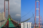[엔트로피타임즈 최기훈 기자] 대림산업과 SK건설은 세계에서 가장 긴 현수교로 건설 중인 터키 차나칼레대교에 캣 워크(Cat walk) 설치 작업을 성공적으로 진행 중이라고 2일 밝혔다. 지난 6월 세계 최고 높이의 철골 주탑 건설을 완료 후 약 5개월 만이다. 캣 워크란, 현수교의 주 케이블을 시공하는 작업자들의 작업 발판이 되는 임시 시설물이다. 공연장이나 TV 스튜디오 천장에 만들어진 좁은 통로를 뜻하기도 하는데, 고양이가 협소한 공간을 조심스럽게 다니는 모습을 묘사한 용어다. 현수교는 주탑과 주탑을 케이블로 연결하고 케이블에서 수직으로 늘어뜨린 강선에 상판을 매다는 방식의 교량이다. 현존하는 교량 중 주탑과 주탑 사이의 거리인 경간장을 가장 길게 확보할 수 있기 때문에 해상 특수교량 분야 가운데 시공 및 설계 기술 난도가 가장 높은 분야다. 특히, 케이블 설치 작업은 현수교 시공 과정 중 가장 핵심적인 공정으로 꼽힌다. 모든 작업이 바람과 습도 등 날씨의 영향을 직접적으로 받는 바다 위 공중에서 진행되어 시공이 어렵기 때문이다. 케이블이 설치되면서 모양과 하중이 실시간으로 바뀌므로 공학적 분석과 세심한 공정관리 또한 필수다. 캣 워크는 작업자들이 약