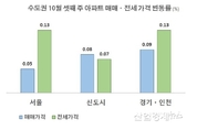 [엔트로피타임즈 최기훈 기자] 전세가격이 임대차3법 시행 후 계속 오르고 있어 정책의도와 달리 집없는 서민들의 어려움이 오히려 가중되고 있다. 시장에서는 전세가격이 오르면 전세 수요가 매매로 전환되면서 매매가격도 덩달아 오를 수 있다는 목소리도 나온다. 실제 9월 이후 줄어 들던 매매가격 상승폭이 최근 6 주만에 다시 오름세로 전환되기도 했다. 임대차3법을 포함한 정부의 고강도 부동산대책이 잇달아 터진 지난 8월 이후, 전세가격 상승률은 0.13%에서 0.10% 까지 잠시 주춤했지만 10월로 들어서면서 첫째 주에 0.11%로 올라가더니 셋째 주 8월 말 수준인 0.13%까지 다시 올라갔다. 서울의 경우 매매가격 상승률은 0.05%인 반면, 전세가격 상승률은 0.13%를 나타내고 있어 전세가격의 상승률이 두배 넘게 가파르다. 신도시에서는 매매가격 상승률이 0.08%, 전세가격 상승률은 0.07%로 비슷하게 나타났지만, 경기인천 지역은 매매가격 상승률 0.09%, 전세가격 상승률 0.13%로 전세가격 상승률이 매매가격 상승률을 크게 상회하고 있다. 매매가격보다 높은 상승률을 보이고 있는 전세가격 상승률은, 노원구가 0.29%로 매매가격과 함께 전세가격도 수도권에