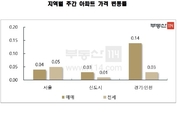 [엔트로피타임즈 최기훈 기자] 서울 강남4구 아파트 가격이 1년만에 하락세를 보인 가운데 소위 '수용성'으로 불리는 수원, 용인, 성동 등 수도권 아파트는 여전히 강세를 보였다. 부동산114가 조사한 금주 아파트가격 동향에 따르면 서울 아파트 매매가격은 전체적으로 0.04% 올랐다. 상승폭이 2주 전 0.06%에서 지난주 0.05%에 이어 금주에도 또 0.01%p 하락해 지속적인 하락추세를 보이고 있다. 이렇게 강남과 서울 아파트가 약세를 보이고 있는 가운데 경기인천은 0.14% 올라 금주도 높은 상승세를 이어가고 있다. 지역별 주간 아파트 가격 변동률 (%) 이번주 서울의 각 지역별 아파트 가격 변동률을 보면, 강동이 -0.06%, 서초 -0.02%, 송파 -0.01%, 강남 -0.01% 등 강남4구가 1년만에 하락하는 모습을 보였다. 암사동 롯데캐슬퍼스트가 1500~4000만원 하락했고 반포 아크로리버파크와 반포주공1단지도 1000~2500만원 하락했다. 중저가 아파트가 많은 비강남권은 수요가 몰리면서 상승세를 보였다. 관악이 0.19%, 성북 0.19%, 노원 0.17%, 마포가 0.11% 올랐다. 관악푸르지오, 봉천우성, 신림주공이 250~2000만원