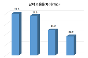 여성들의 사회참여율이 증가하면서 남녀 고용률 차이도 계속 좁혀지고 있는 것으로 나타났다. 통계청은 15일 '2017 일가정 양립지표' 발표를 통해 국내 근로실태를 공개했다. 통계청에 따르면2016년 기준 남녀의 고용률은 남자가 71.1%, 여자는 50.2%로 그 차이는 20.9%p로 여전히 높게 나타났지만 남녀간 고용률 차이는 지속적으로 좁혀지고 있는 것으로 조사됐다. 남녀 고용률차이는 4년전인 2013년 22.0%였으나 다음해인 2014년에는 21.9%로 줄었고 2015년에는 21.2%, 2016년에는 20.9%로 차이가 좁혀지는 추세를 보이고 있다. 남녀 고용률의 차이는 결혼에 따른 크게 차이가 나는 것으로 나타났다. 2016년 미혼인 남녀의 고용률 차이는 1.1%p밖에 안되는 반면 배우자가 있는 근로자의 경우에는 남자가 82.0%, 여자 52.8%로 그 차이가 29.2%p까지 벌어졌다. 결혼과 함께 여성의 고용률이 급속히 감소돼 우리사회에서는 여전히 결혼이 여성경력단절에 큰 영향을 끼치고 있음을 보여주고 있다. 18세 미만의 자녀를 둔 경우 남자의 고용률은 자녀 연령에 큰 영향을 받지 않으나 여자는 자녀의 연령이 어릴수록 고용률이 낮게 나타났다. 한편,