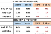 [산업경제뉴스 민경종 기자] 영·호남을 주된 영업기반으로 은행·증권·캐피탈 등의 종속회사를 거느린 지방은행금융지주 3사의 1분기 손익성적을 분석한 결과 BNK금융지주가 가장 저조한 장사를 한 것으로 나타났다. 각사가 공시한 1분기보고서에 의거해 먼저 종속기업 실적을 포함한 연결재무제표기준 올 1분기 합산 영업이익부터 살펴보면 총 7743억 원을 시현, 전년 동기 8451억 원보다 약 708억이 줄어 8.4% 가량 악화됐고, 합산 순이익 역시 6132억 원을 시현해 전년 동기 6403억 원 대비 272억 원이 줄어 약 4.2% 감소하는 등 3사 모두 부진한 성적표를 시장과 투자자에게 내밀었다. 이를 3사별로 세분화해 살펴보면 먼저 영업이익의 경우 부산경남권의 BNK금융지주가 3218억 원을 시현, 전년 동기 3752억 대비 약 535억 원이 줄어 –14.2%를 기록했고, 이어 대구·경북지역을 관할하는 DGB금융지주가 2293억 원의 영업이익을 올리는데 그쳐 전년 동기 2402억 보다 약 109억 원이 감소해 -4.6%를 시현 그 뒤를 이었다. 반면에 호남권을 관할하는 JB금융지주는 2232억 원의 영업이익을 올려 전년 동기 2296억 대비 약 64억 원이 감소