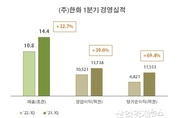 [산업경제뉴스 문성희 기자] 지난해 11월 사업구조를 재편한 ㈜한화가, 올해 1분기에 창사 이래 최대의 경영성과를 거두고 환한 표정을 지었다. (주)한화의 2023년 1분기 사업보고서에 따르면 회사는 올해 1분기에 매출 14.4조, 영업이익 1조3,738억원, 당기순이익 1조1,553억원을 기록했다. 지난해 1분기와 올해 실적을 비교해 보면 매출은 32.7% 증가했고, 영업이익은 30.6%, 당기순이익은 무려 69.4%나 증가했다. 회사는 방산부문과 신재생에너지, 금융 부문 에서 고르게 실적이 개선된 영향이라며, 분기 영업이익으로는 2022년도 2분기에 수립한 기록을 뛰어넘어 창사 이래 최대 기록을 경신했다고 설명했다. 이번 실적은 작년부터 진행된 사업 포트폴리오 개편 이후 계열사 간 시너지의 가능성을 확인했다는 점에서 의미있는 결과라고 업계는 평가하고 있다. ㈜한화는 지난해 11월 건설, 모멘텀, 글로벌 부문으로 새롭게 재편하며 자체사업을 위한 외형성장 및 수익성 확보의 기반을 마련했다고 설명했다. ■ 건설부문은 대형 프로젝트가 순조롭게 진행됨에 따라 매출이 확대 되었으며, 모멘텀 부문은 2차전지/태양광 제조설비 수주 확대로 매출이 증가했다. ■ 한화솔루션