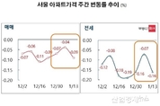 [엔트로피타임즈 문성희 기자] 규제지역 전면해제로 가격 하락폭을 줄였던 서울 주택가격이 단 일주일만에 다시 이전의 급락세로 꺾여버렸다. 시장에서는 한 주 전 하락폭이 '반짝' 줄었던 원인이 정부의 규제해제가 아니라 한 동안 잠잠했던 금리인상 행보때문이었다는 분석이 나온다. 수도권 아파트가격을 매주 조사하는 부동산R114에 따르면 지난주(1월13일 기준) 서울 아파트 가격 주간변동률은 매매 변동률이 -0.09%, 전세 변동률이 -0.16%로 나타났다. 매매 변동률은 한 주 전에 -0.04%로 하락폭이 갑자기 크게 감소됐고, 전세 변동률도 -0.07%로 하락폭을 크게 줄였었다. 갑작스런 움직임때문에 시장에서는 정부의 규제지역 전면해제 조치의 영향이라고 보는 시각이 많았다. 하지만 이런 추세는 단 일주일만에 다시 매매 0.05%포인트, 전세 0.09%포인트 하락폭을 확대하며 정부의 규제완화때문이라는 분석을 무색하게 했다. 부동산R114는 "정부의 1.3대책 발표로 규제 완화에 대한 기대감 확산에도 불구하고 시장의 분위기 전환이 쉽지 않은 모습"이라면서 "입주가 이어진 서울 강남구, 수원, 용인, 화성 등 경기 남부권이 매매 및 전세가격 약세가 두드러졌다"고 설명했