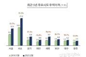 [산업경제뉴스 문성희 기자] 국내 공동주택의 평균 가격은 5억8400만원으로 조사됐다. 수도권은 8억 5100만원, 지방은 3억 4200만원이다. 한국부동산원이 조사한 공동주택가격 통계에 따르면 전국 공동주택 평균가격은 지난해 6월 6억원을 넘어섰지만 빅스텝이 있었던 7월부터 12.7% 감소해 올해 2월 현재 5억원대로 내려왔다. 수도권은 13.3% 하락했고, 지방은 11.0% 하락했다. 가격이 급등하기 시작한 2018년 1월 전국 평균가격은 4억1900만원이었고 지난해 6월 6억6900만원까지 59.6% 상승하며 역대 최고 상승속도를 기록했었다. 수도권도 2018년 1월 5억6700만원에서 2022년 6월 9억8300만원까지 무려 73.2%나 올랐고 이후 8억원대로 떨어졌다. 지난해 7월부터 가격이 하락하긴 했지만 2018년부터 2023년까지 5년간의 상승률을 보면, 전국 주택가격은 39.4%, 수도권은 50.1%, 지방은 23.0% 상승했다. 수도권과 지방의 집값은 2018년에 2배 차이였지만 현재는 2.5배 차이로 커졌다. 주택양극화가 더욱 심화됐다는 지적이다. 조금더 구체적으로 주요 시도의 주택가격을 살펴보면, 서울은 13.1억원으로 조사됐다. 5년