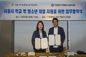 [엔트로피타임즈 민경종 기자] 커피 전문점 탐앤탐스(대표 명선철)가 지난 2월 경기도에 이어 이번엔 서울지역 학교 밖 청소년들의 건강한 성장과 취업지원에 나섰다. 이를 위해 지난 13일 탐스커버리 건대점에서 서울시학교밖청소년지원센터(소장 유혜진)와 업무협약을 맺고 학교 밖 청소년들의 건강한 성장과 취업 지원을 약속했다고 26일 밝힌 것. 이날 협약식을 통해 탐앤탐스는 서울 지역 학교 밖 청소년 인재를 발굴하고, 일 경험 습득을 위한 직업 훈련 프로그램을 운영할 예정이다. 또한 협약 내용에 대한 홍보를 지원하고 본 협약의 의의를 충족하는 지원센터 측과의 공동사업을 단계적으로 추진할 계획이다. 이는 학교 밖 청소년들의 교육 소외 문제를 완화하고 실효성 있는 직무 교육이 지속적으로 실시된다는 점에서 이번 업무 협약이 지닌 사회적 가치를 엿볼 수 있다는 것이 업계의 평가다. 탐앤탐스 명선철 대표이사는 “서울 지역 학교 밖 청소년들이 자기주도적으로 진로를 설계하고 건전한 직업 가치관을 갖기를 바라며, 탐앤탐스가 든든한 직업적 울타리가 될 수 있게 노력하겠다”고 말했다. 이어 유혜진 센터 소장은 “가능성을 갖춘 학교 밖 청소년들이 경제적 자립을 할 수 있게 기회를 제공