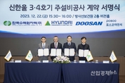 [엔트로피타임즈 최기훈 기자] 탄소중립과 에너지 안보를 위한 원전 생태계 복원 정책이 본격화되고 있는 가운데, 현대건설이 국내 대형원전 건설을 재개하며 대한민국 원전사업을 대표하는 전통 강자임을 다시 한 번 입증했다. 현대건설은 지난 22일(금) 서울시 중구에 위치한 방사선보건원에서 윤영준 현대건설 사장, 황주호 한국수력원자력 사장과 컨소시엄 관계자들이 참석한 가운데 총 3조 1천억 원 규모의 신한울 3·4호기 원자력발전소 주설비 공사의 계약 서명식을 가졌다. 신한울 3‧4호기 원자력발전소 주설비 공사는 경상북도 울진군 북면 일원에 1400MW급 원전 2기를 건설하는 사업으로, 공사기간은 착공일로부터 약 115개월이다. 현대건설은 두산에너빌리티, 포스코이앤씨와 함께 이 공사에 참여하며, 주간사인 현대건설의 수주 금액은 전체 규모의 55%에 해당하는 1조 7157억원에 이른다. 이번에 진행된 신한울 3‧4호기 입찰은 국내 원전건설 최초로 공사 수행 능력, 시공 계획 및 가격 등을 종합적으로 심사하는 기술력 중심의 선진적 입찰제도 ‘종합심사낙찰제’를 적용했다. 현대건설은 이번 심사에서 경쟁사 대비 높은 입찰가를 제시했지만 기술 분야에서 높은 배점을 얻어 원전분야