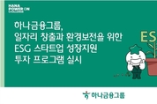[산업경제뉴스 김명인 기자] 하나금융그룹(회장 함영주)은 청년 일자리 문제 해결과 환경보전에 적극 동참하기 위해 ESG 스타트업의 성장 지원을 돕는 투자 프로그램인『하나 ESG 더블 임팩트 매칭펀드』에 참여할 기업을 모집한다고 밝혔다. 이 펀드는 하나금융이 친환경 기술을 보유한 그린테크 스타트업과 일자리 창출 능력 및 성장성이 있는 사회혁신기업에게 초기 사업화 자금을 지원하여 기업의 성장에 기여함으로써 일자리 창출 및 환경보전 효과를 추구하는 더블 임팩트 투자 프로그램이다. 참여 기업 모집은 총 2회차로 진행된다. 4월 8일부터 5월 24일까지 1차 모집을 진행하고, 6월 3일부터 8월 2일까지 2차 모집을 진행할 예정이다. 신청은 ‘하나 파워 온’ 홈페이지를 통해 신청 가능하다. 하나금융은 각 회차별 모집 종료 후 (재)한국사회투자와 함께 서류심사 및 현장실사를 거쳐 두 차례의 투자심의위원회를 통해 신청기업의 ▲일자리 창출 능력 ▲성장성 ▲친환경 기술력 ▲사업역량 등을 심사하고, 총 30억원 규모로 최종 투자 기업들을 결정할 예정이다. 또한, 투자가 결정된 사회혁신기업을 대상으로 후속 투자 연계를 위한 데모데이(Demoday)도 개최, 후속 투자를 결정할