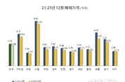 [산업경제뉴스 문성희 기자] 2022년 금리가 치솟으면서 집값이 폭락했지만, 2023년 정부가 금리를 동결하고 대출규제를 완화하면서 다시 집값이 올랐다. 그러나 지난해 하반기 가계대출을 우려한 정부가 다시 대출규제를 강화하자 집값은 또 다시 하락세로 접어 들었다. 이렇게 오르락 내리락 한 집값은 결국 2년 사이 8.8% 하락한 것으로 나타났다. 한국부동산원의 주택가격 데이터를 분석해본 결과, 2023년 12월 주택가격은 전국 평균 3.90억원으로, 2년 전인 2021년 12월 4.28억원보다 3천800만원(-8.8%) 떨어진 것으로 조사됐다. 지난해 12월 현재, 서울은 8.19억원, 세종시가 5.30억원, 경기도가 4.55억원으로 수도권과 세종시가 집값이 높은 것으로 조사됐다. 그외 광역시는 수도권·세종과 격차가 컸다. 대구가 3.21억원, 대전 3.15억원, 부산 3.13억원으로 3억원대 초반에 머물렀고 인천, 울산, 광주는 3억원 아래로 나타났다. 2년 전 주택시장 호황기와 비교하면 전국 평균은 8.8%, 서울은 7.2%가 떨어졌지만, 세종은 18.8%가 떨어져 가격변동이 가장 심했다. 대구 역시 15.6%가 하락해 가격 변동이 컸던 것으로 나타났다.