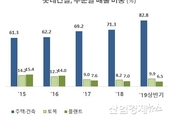 [엔트로피타임즈 문성희 기자] 롯데건설의 주택건축사업 비중이 계속 커지고 있는 것에 대해 업계에서 우려의 목소리가 나오고 있다. 올해 들어와 주택시장이 하락세로 접어 들었고 앞으로 전망도 밝지 않은데, 사업구조는 쉽게 조정할 수 없기 때문이다. 롯데건설의 전체 매출 가운데 주택건축사업의 매출이 차지하는 비중을 보면, 2015년에는 전체 매출의 61%를 차지했지만 2015년 부터 계속 증가해 지난해에는 70%를 넘어섰다. 그리고 6개월 뒤인 올해 상반기에 82.8%로 10%포인트가 넘게 증가했다. 회사의 영업이 주택사업에 크게 의존하는 사업구조가 된 것으로 평가된다. 롯데건설의 주택사업 비중은 다른 대형건설사들의 주택사업 비중과 비교해봐도 월등하게 주택의존도가 높은 것으로 나타났다. 2018년 매출을 기준으로 보면 주택사업비중이 두 번째로 높은 대우건설도 62%이고, 대림산업과 포스코건설이 58%, 현대건설이 48%, GS건설이 43% 수준이다. 시장에서 롯데건설의 사업구조가 지나치게 주택에 편중돼있다며 사업을 다각화할 필요가 있다는 지적이 나오는 이유다. 하지만 이런 우려에도 불구하고 롯데건설의 올해 영업실적은 아직 평년 수준을 유지하고 있다. 롯데건설의 올
