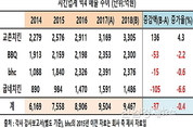 [엔트로피타임즈 민혜정 기자] 교촌, bhc, BBQ, 굽네 등 외형 기준 국내 치킨 프랜차이즈 빅4의 지난해 매출 실적이 각 사별로 명암이 교차한 것으로 나타났다. 각사 감사보고서(별도기준)에 따르면 업계 1위 교촌은 지난해 3305억 원의 매출로 전년도 3169억 대비 약 4.3% 증가해 4사 중 홀로 성장 가도를 달리며 독주를 지속한 반면에, 2위 bhc치킨과 3위 BBQ, 4위 굽네치킨 등 3개사는 2017년 대비 각각 –0.6%, -2.2%, -6.6% 씩 역 성장해 대조를 보였다. 세부적으로 들여다보면 먼저 이들 4사의 합산 매출액은 총 9467억 원을 시현해 교촌치킨이 홀로 성장세를 펼치는 선전에도 불구하고 전년도 9504억 원 대비 약 0.4% 감소했다. 하지만 지난해 업계가 가격 인상을 단행했음에도 불구하고 4사 합산 외형이 감소한 것은 의례적인 일로 받아들이고 있는 분위기다. 일반적인 매출액 산정이 ‘판매가격*판매수량’임을 감안한다면, 외형의 감소는 결국 판매량이 줄어든 것으로 볼 수도 있기 때문이다. 물론 잦은 할인 행사 등으로 인해 지난해 전체 평균 판매가격이 줄어들었을 경우도 가정해 볼 수 있지만 업계에서는 판매량 감소에 더 무게를 두