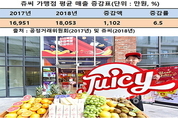 [엔트로피타임즈 민혜정 기자] 생과일주스 브랜드 ‘쥬씨(JUICY)’의 지난해 가맹점 평균 매출이 급격한 최저임금 인상 여파와 임대료 상승과 외식경기 침체 등에 따라 영세 자영업자들이 줄 도산하는 등 척박한 영업환경에도 불구하고 전년 대비 상승한 것으로 밝혀져 그 배경에 궁금증이 일고 있다. 이에 대해 식음료업계에서는 지난해 쥬씨가 ‘EXTREME FRESH’라는 슬로건을 진행함과 동시에 배달서비스 전격 도입, 비수기 겨울시즌을 대비한 커피와 마카롱, 대만식 샌드위치 등 디저트 메뉴를 강화한 전략 등이 주효한 것으로 보고 있다. 이에 쥬씨는 올해 새 슬로건으로 ‘RE:BOOT JUICY(재시동)’의 설정과 함께 ‘3F’전략을 전개함으로써 가맹점 평균 매출 상승세에 더욱 속도를 높인다는 복안이다. 2018년 가맹점 평균매출, 1.8억...2017년 1.69억 대비 6.5% 증가 공정거래위원회의 가맹사업현황과 쥬씨에 따르면 지난해 쥬씨 700여 가맹점 1곳 당 평균매출액은 1억8053만 원으로 전년도 1억6951만 원 대비 1102만 원이 증가해 6.5% 신장했다. 이는 최근 프랜차이즈 가맹점주 등 많은 영세 자영업자들이 경기침체 장기화에 따른 소비 부진과 최저